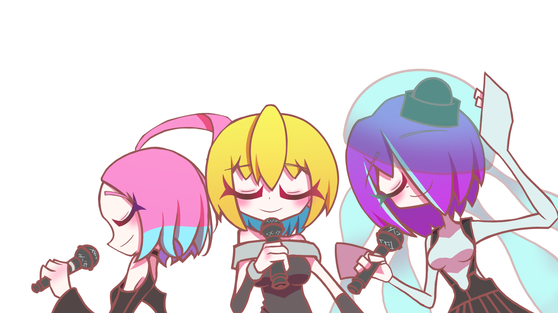 カラオケ配信のサムネに使ったイラスト。 楽しそうでよかったですね。 配信画面で口パクさせるために目と口の差分を描いた。