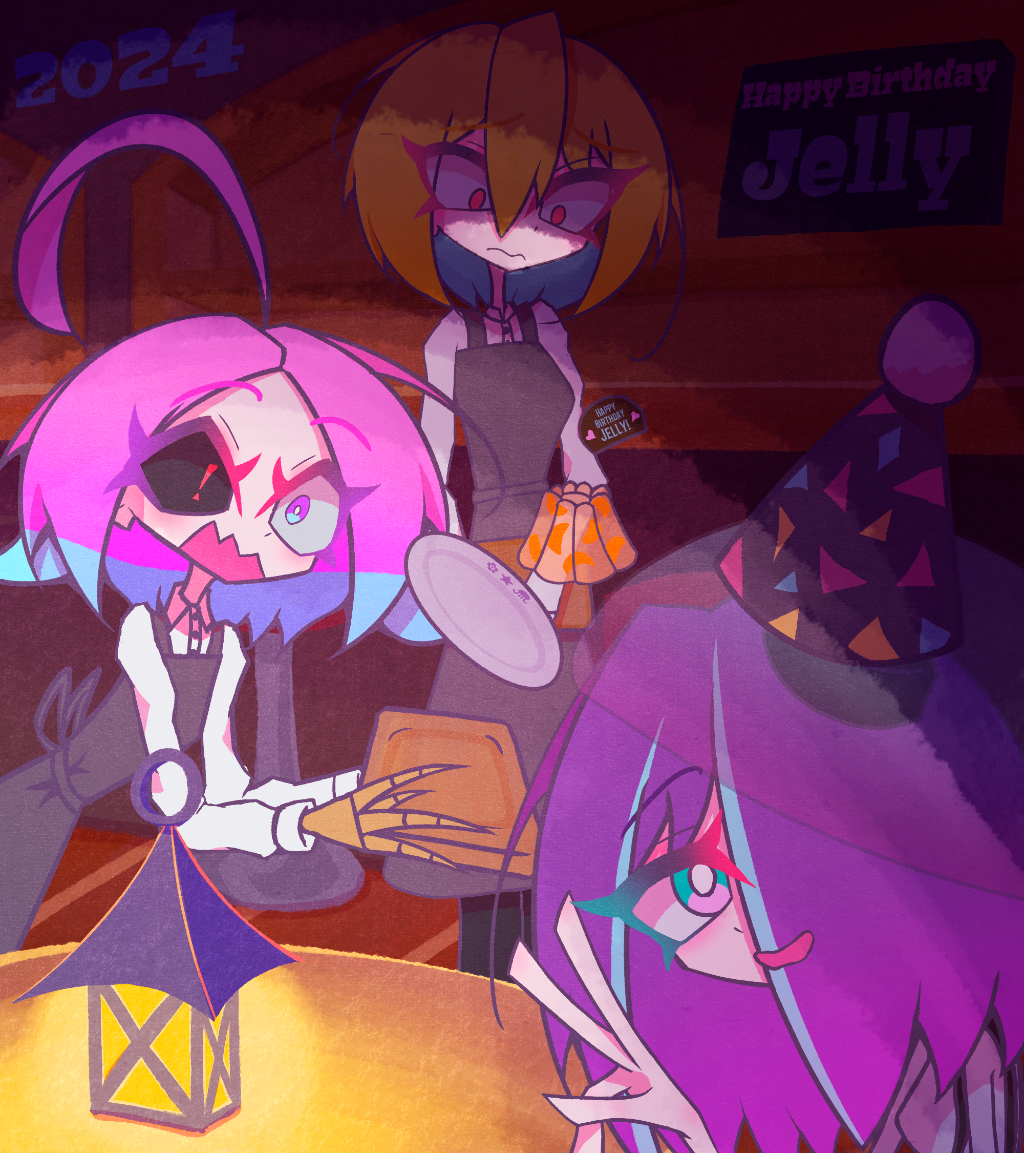 ジェリーのお誕生日イラスト。 ランタンで二人と。背景をちゃんと描いたイラストは初めて…? ゼリーの行方やいかに