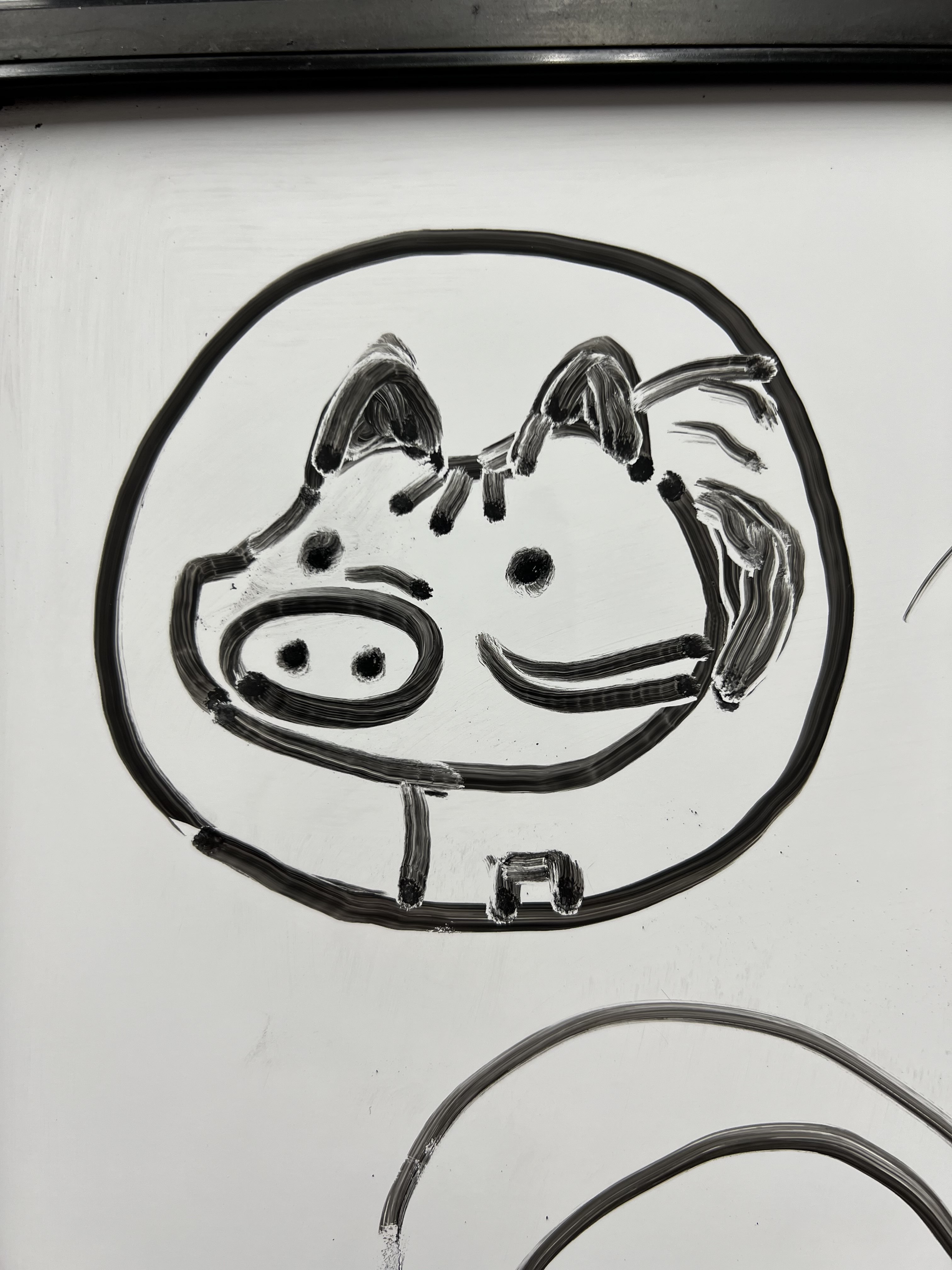 コメダコーヒー店にあったホワイトボードに三人がそれぞれ書いたイラスト。 それぞれの個性がよく出ていて良いですよね。みんなかわいい。 赤べこはフランが描いてくれました。これもかわいい。 素敵なイラストありがとう!